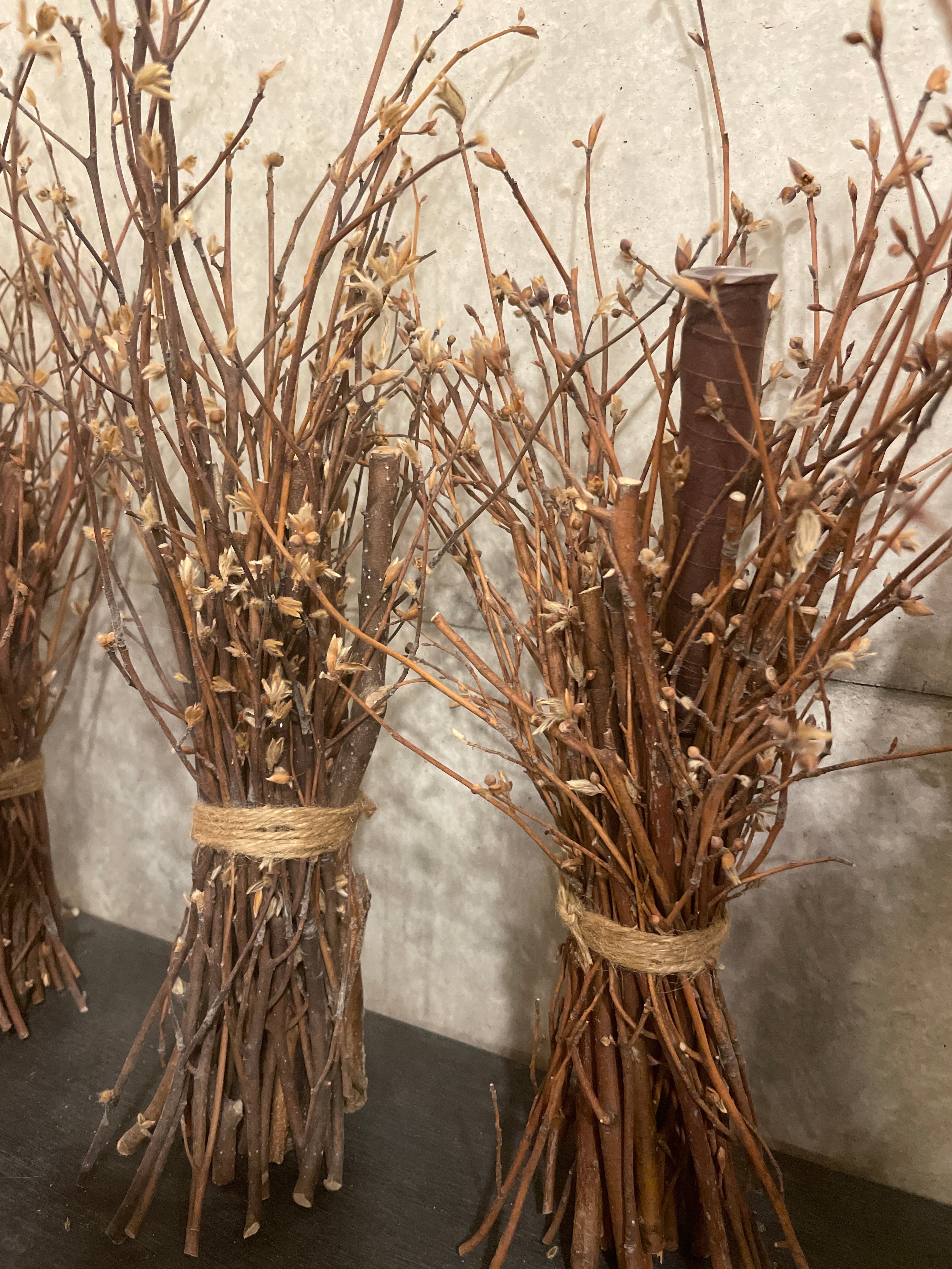 黒文字の枝をドライにしたものを立つように束ねたブーケです。